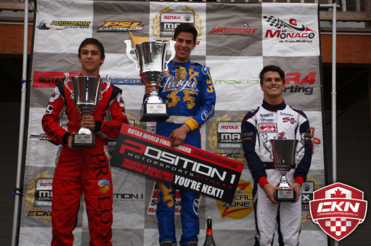 In the end, DeMelo would come up a couple laps short and Szigeti scored the win, a bittersweet ending to a tough season for him. DeMelo would cross in second and with Bedard only managing to get back to seventh DeMelo would earn the championship. With DeMelo already qualified after his Canadian title Bedard earns the ticket to the Rotax Grand Finals and the great day by Szigeti moved him onto the championship podium in third.