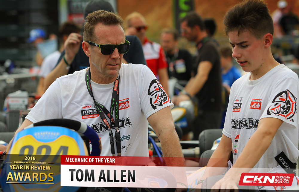 An award I am challenged with every year. There are so many mechanics from coast to coast and each and everyone has made an effect on the driver or drivers they work with. This year I was really impressed with the number of fathers who turned the wrenches on their kid’s karts and that has led to me in selecting Tom Allen as the 2018 recipient.