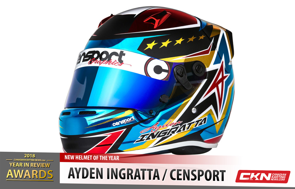 This year’s winner comes from the paint booth of Tyler Cenarussa of Censports Graphics. His work on Ayden Ingratta’s new helmet was phenomenal and following the gold Sebastian Vettel replica that Ingratta was previously using, had his work cut out in order to top it. He did just that. The helmet featured a number of different candy chrome colours and accented elements. Topped off, Tyler stencilled in a Star Wars graphic on the back to cater to Ayden’s request. All in all, it is a piece of art that should be placed in a trophy case in the near future.