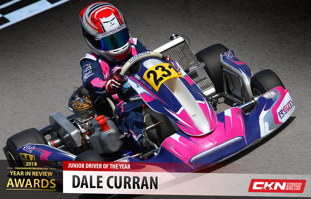There was not a more dominant driver in 2018 than Dale Curran. From June through August, Curran went unbeaten in every major competition he entered in Canada, including a successful defence of the Canadian National title in Rok Junior. Four victories in the first four Champion Ron Fellows Karting Challenge races helped him build up a big enough gap that he was able to sit out the final round and take it as a drop and secure that Rok Junior title as well.