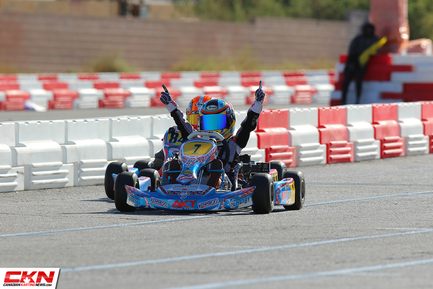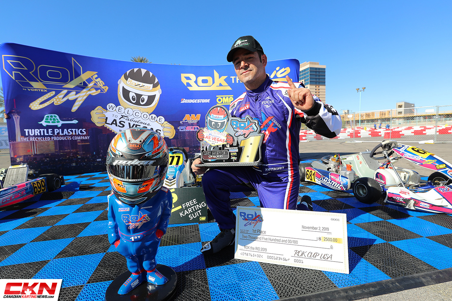 Beginning his final from the outside of row five, Vatche Tatikian took advantage of some close, hard racing in Masters ROK to take the win. Beginning the final lap in a distant third, contact between the two leaders in the second to last corner opened the door for Tatikian to take the lead and cruise to the finish line. The win looked as if it was going to go to either Scott Falcone or Renato Jader-David, but aggressive defending and with the shot at the championship, the two would make contact knocking Jader-David out of the race. Falcone would continue and limp across the line for second while Danilo Ramalho rounded out the podium. Erik Jackson put himself in position to score a top-five result as he and Eric Molinatti finished fourth and fifth respectively.