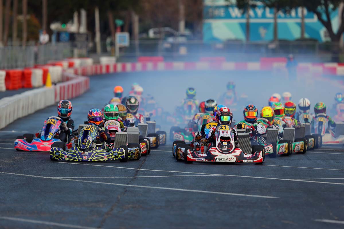 Marco Romero would have a disastrous start in Mini ROK and by the end of the first lap, dropped from second to sixth in the running order. Kai Johnson held his position at the front of the field ahead of Max Cristea, Antoine Lemieux, and David Zhao (Goodwood Kartways), who all had advanced forward. Romero gained one of his lost positions back on lap five to creep back into the top-five as Tyrone Kemper (Team Benik) and Edward Kennedy (Nash Motorsportz) were up three and four spots respectively to sixth and seventh. Cristea took the lead on lap seven, but Johnson regained control a lap later bringing Lemieux with him to second. In the end, it was Johnson who scored the heat one win ahead of Cristea and Zhao who got by Lemieux on the final circuit. Lemieux settled for fourth with Romero in fifth. Following the race, Lemieux incurred a penalty that dropped him to seventh on the result sheets.