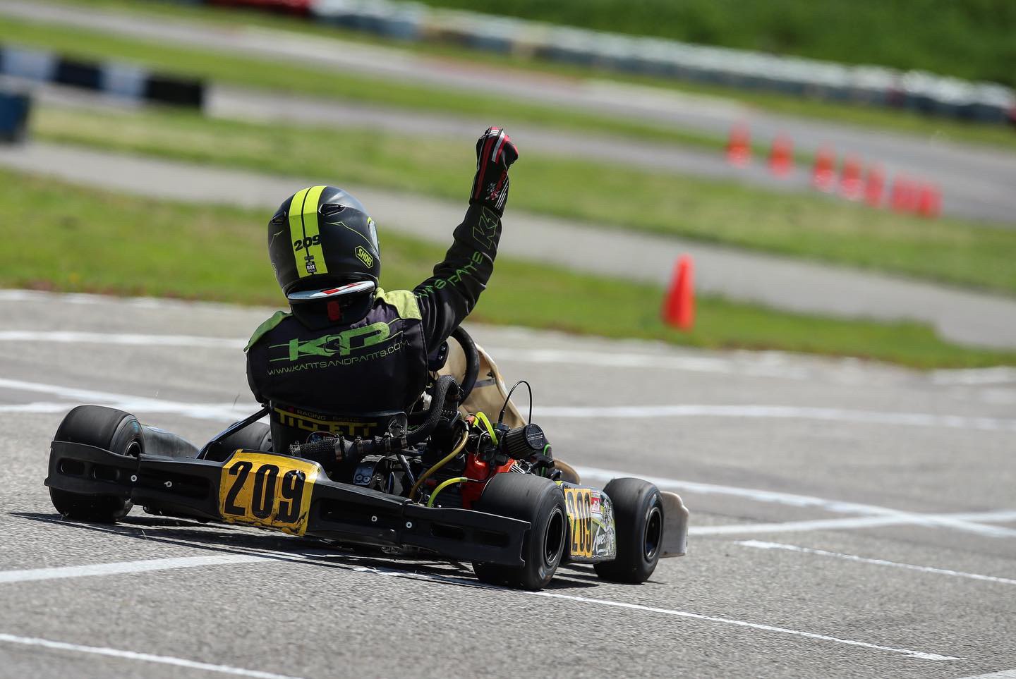 Approaching the last lap sign, Bonham led the train to the very inside of the track, looking back to see where his competitors were. Not quite looking where he was going, he had no clue a kart being lapped had pulled to the side of the track to allow the leaders by and just past the start/finish line, boom. At the last moment, Bonham caught a glimpse of the kart, but it was too late and they made hard contact, sending both into the grass and ending their races on the spot. McCullough and Prior saw the kart and jumped out of the way, leaving them to duke it out on their own.