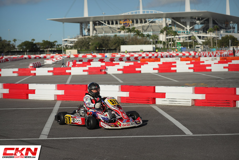 Starting with the Junior Rok category, there are three maple leafs in the top-ten standings heading into Ocala. Mackenzie Clark (Prime Powerteam – BirelART) ranks P4 while Justin Arseneau (Speed Concepts Racing – TonyKart), who we announced this morning will compete in the CIK Academy Trophy this season, is P6. Dale Curran (Racing Edge Motorsports – Kosmic Kart) hasn’t had a lot of luck at the two FWT rounds, but he enters the weekend with some momentum after scoring a huge win at the SKUSA WinterNationals in California and ranks P9. These three Canucks will be up front all week in Ocala and we’re hoping to see at least one on the podium for the race and the overall championship.