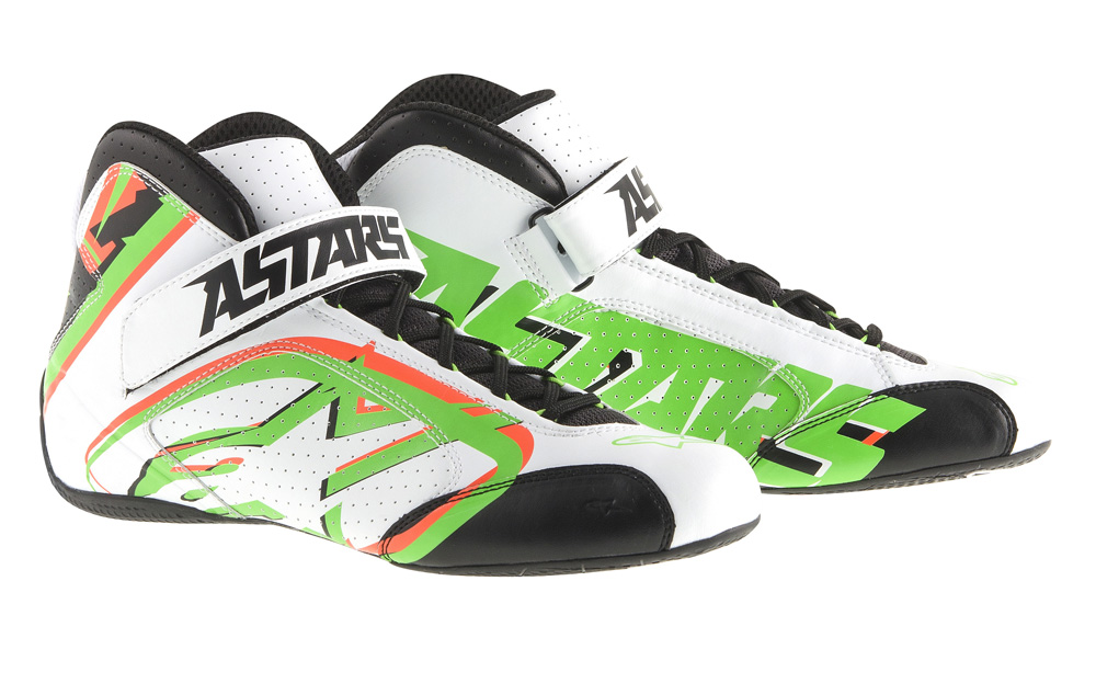 Designed to be worn with other products in Alpinestars NRG Collection for an energy-infused ‘total look’ at the track, the Tech 1‐K NRG is constructed from microfiber for durability. Specially developed by Alpinestars auto racing footwear department, the shoe features an exclusive rubber compound sole for grip and an innovative foot counter affording excellent support, movement and sensitivity on the pedals.