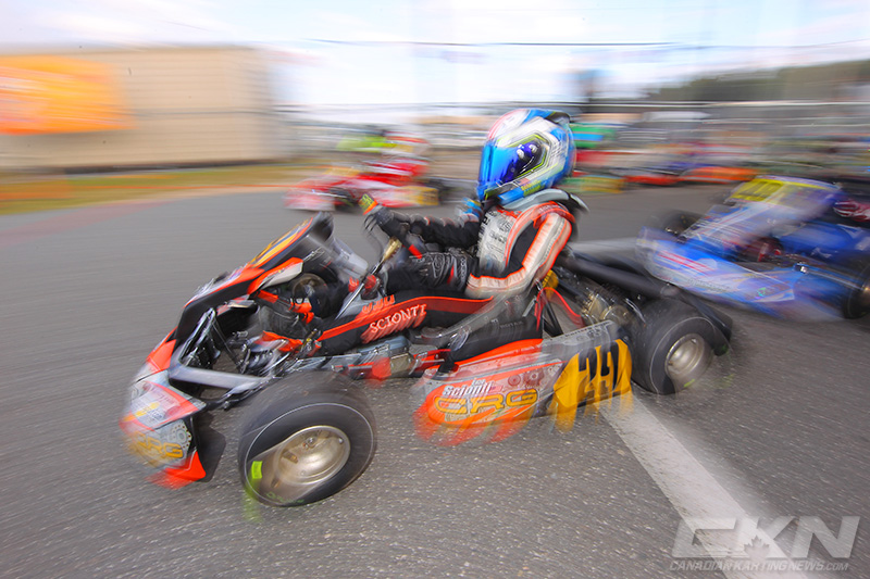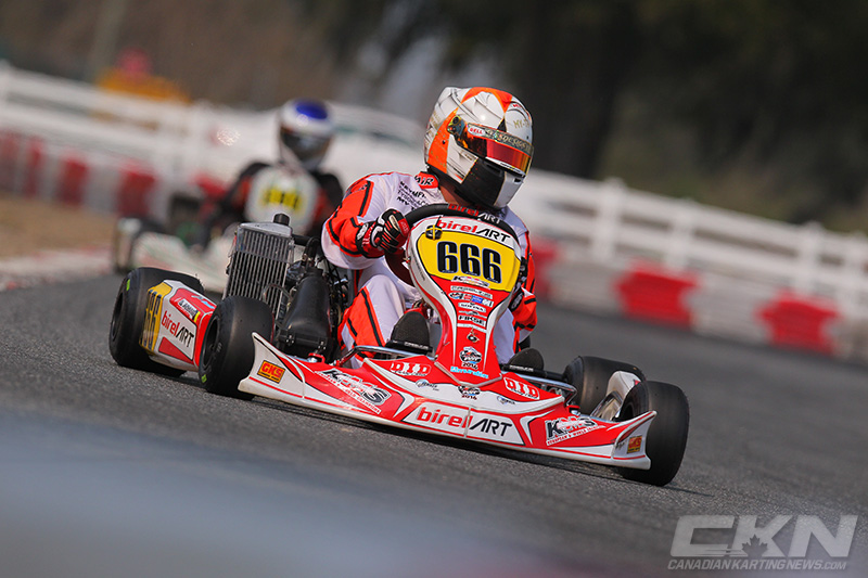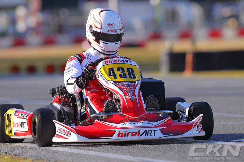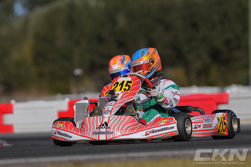 Enzo Scionti is showing great pace this weekend in Micro-Max, posting the fast time in Qualifying. Canadian Justin Arseneau just missed the top spot and will line up on the outside of the front row for all three heats. James Egozi, round one winner Josh Pierson and Ashton Torgerson round out the top-five in the largest category of the weekend, featuring 31 karts. In the opening heat race, Pierson took control over Arseneau and Rafael Camara.