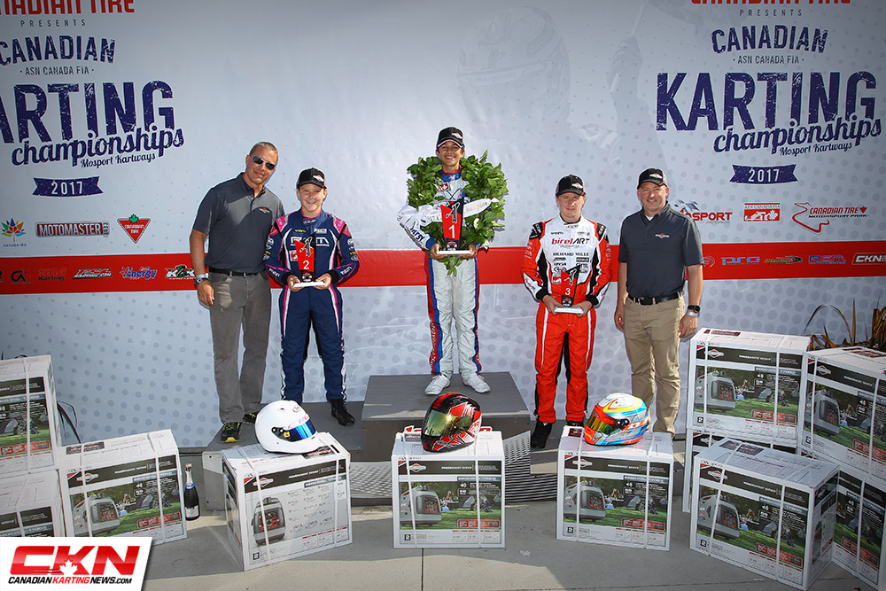 However, the race didn’t end there. Unfortunately for Lucente, his engine failed to pass technical inspection by the Briggs & Stratton representatives, meaning his superb drive went unrewarded. It was also determined by officials that Savoie would be penalized for contact earlier in the race with Chayer meaning when the dust settled it was Avery Miller who was crowned the 2017 Canadian National Karting Champion for Briggs & Stratton Junior!