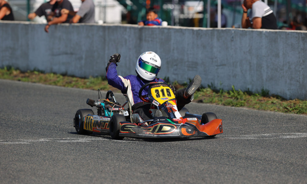 After missing out on the win Friday night by 0.004 seconds, Bonham suited up Saturday in Briggs Senior and once again it was a head-to-head battle with Nicky Palladino (Exprit Kart) for the win.