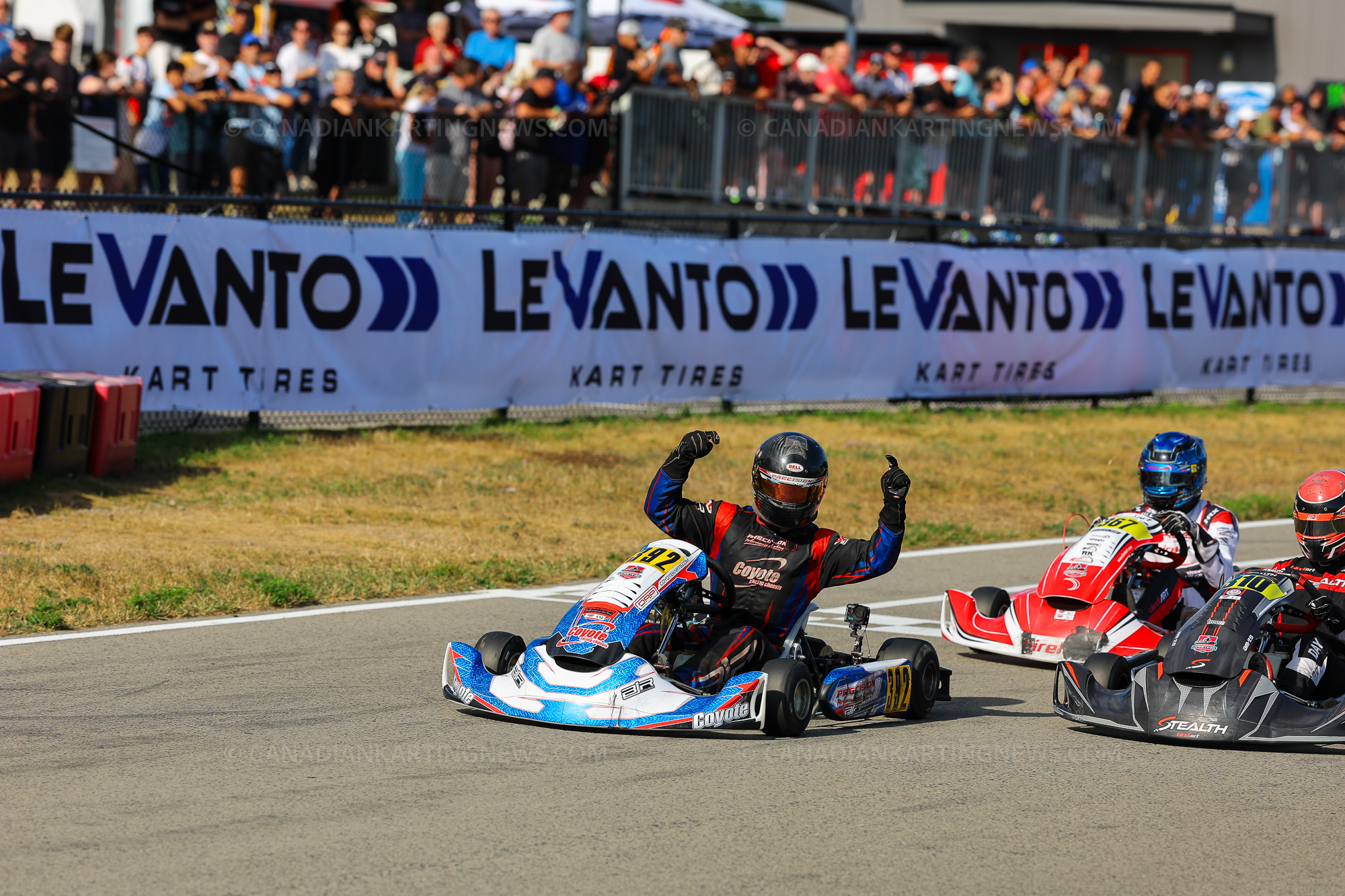 That elevated Kegan Irwin (CL Kart) to the top of the podium, celebrating his first Canadian Championship. Marco Bazan (OK1) was promoted to runner-up, with Quebec’s Levy Arcand (BirelART) earning a hard-fought third place. Cameron Conrathe (Kubica Kart) and Maddox Gauthier (BirelART) were fourth and fifth.