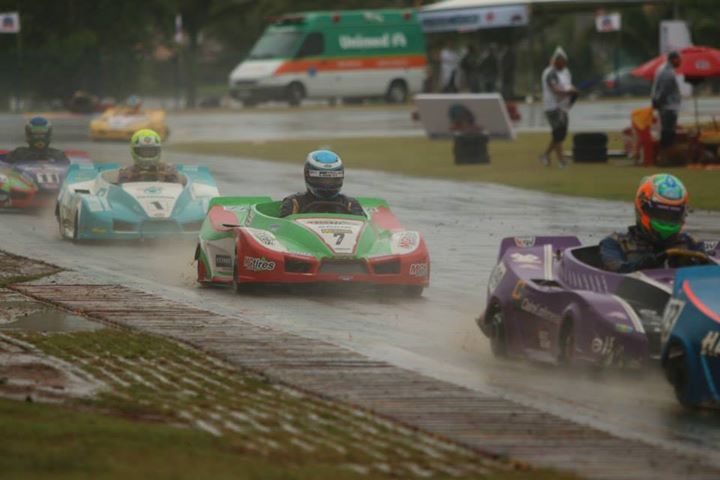 Our team crew chief Rodrigo asked me to go next. I was really excited to have a chance to show them what I can do because I’ve always been very fast in real wet conditions, (and on wets of course). I jumped in, and after a couple of laps, it happened… I got into the zone. The kart was handling exactly like mine. Rodrigo (who was timing every lap) was standing with Sabià, the big boss of the 3 teams under our tent (2 pro teams and us), Victor “The Alfano Guy”, and Luis, alongside the front stretch. I will always remember their faces when I did my first fast lap. They were all jumping with fists in the air and big smiles on their faces. I looked down at my Alfano and I see a 1:11.335. I make the first corner and look up at the top ten leader board. Nobody was in the 1:11s. I was even timed as low as 1:10.800 and nobody on the leader board was better than 1:11.500. Most of them were in the 1:12 and 1:13. I climbed all the way to the 11th spot overall. I was passing guys 1, 2, and even 3 at a time, and 2 corners later they were nowhere near me. At one point, there was just this one guy I couldn’t get by. Every time I showed my nose, he would squeeze me so tight I had to put 2 wheels on the grass. So a kart was catching us because behind that #99 I was doing 1:13s. The kart behind me puts his nose under me, I give him room, look over and it’s Tony Kanaan. I let him by to watch how he was going to deal with #99. I saw his move, tried to follow him but I didn’t have enough room. I waited a couple of corners and BAM! I passed him. The next few laps, I’m gaining on Kanaan and just as I’m about to get on his bumper, we get to corner one. I apply the brakes and the throttle sticks at full speed. I spin out, hit the tire wall backwards, try to get off, but the kart wants to keep going forward onto the track and incoming traffic. I had to shut the engine off. Rodrigo jumped the fence, ran to me, unstuck the throttle and told me to go to the pits to lubricate the mechanism and change drivers.