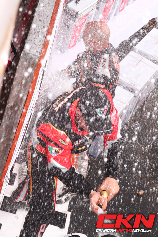 Stuart Clark added yet another accomplishment today to his already stellar season by winning, in commanding fashion, the Rotax DD2 Masters Canadian Karting Championship. Clark started weekend strong by grabbing the Canadian Tire Super Pole on Friday and winning heat one. He rolled into Saturday taking home both heat race wins and was set to start Sunday from pole position in the pre finals. When Sunday came Clark was unstoppable taking the home the pre final and Final victories in dominating fashion.