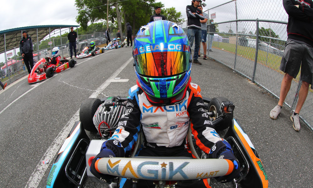 A misty and wet Sunday was the final hurdle racers in the ROK Cup USA Florida Winter Tour had to face before the championship trophies could be awarded at Ocala Gran Prix. The conditions were so unpredictable that the first three Finals of the day had winners who started on the wrong tire for the track condition, which turned into the right tire for the pending weather change.