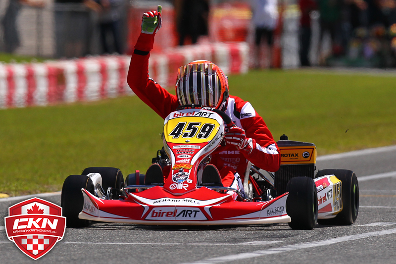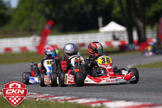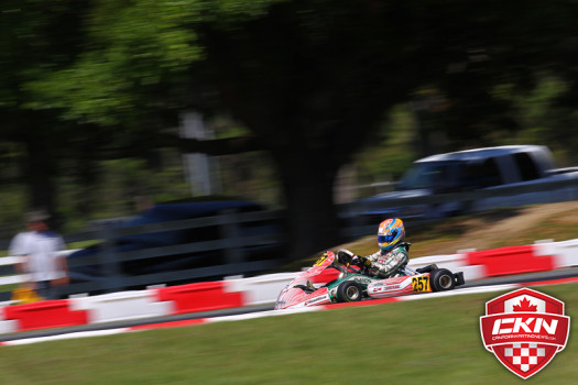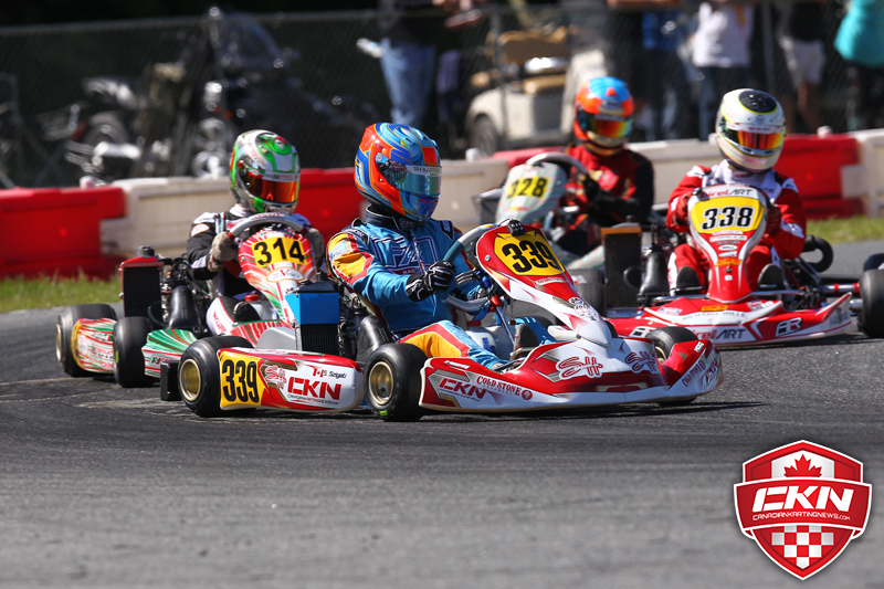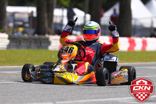 Kirkwood was en route to a perfect run in the heats until a fuel filter issue in heat three forced him to drive one-handed all race long, allowing his OGP teammate Austin Garrison to rank the highest and earn Sunday’s pole-position. Canadian drivers held positions four through eight in the ranking with Gianfranco Mazzaferro (Ferrolati Corse/TonyKart) leading Szigeti, Kevin Monteith (REM/Kosmic), Christophe Paquet (KCR/CRG), and Cedrik Lupien (SH Racing/FA Kart).