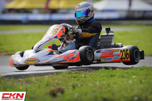 Following a brief shower in the Prefinal that mixed up the running order, Canadian Jordan Redlin (Vemme Kart) led the field to green. Making the most of his eighth-place starting spot on Saturday, Becklin worked his way up to the third step of the podium, following great drives by Jake Drew (Kosmic) and Redlin, that saw Drew track down the race leader, overtake and eventually pull away when Redlin made a mistake on the final lap trying to set up a pass.