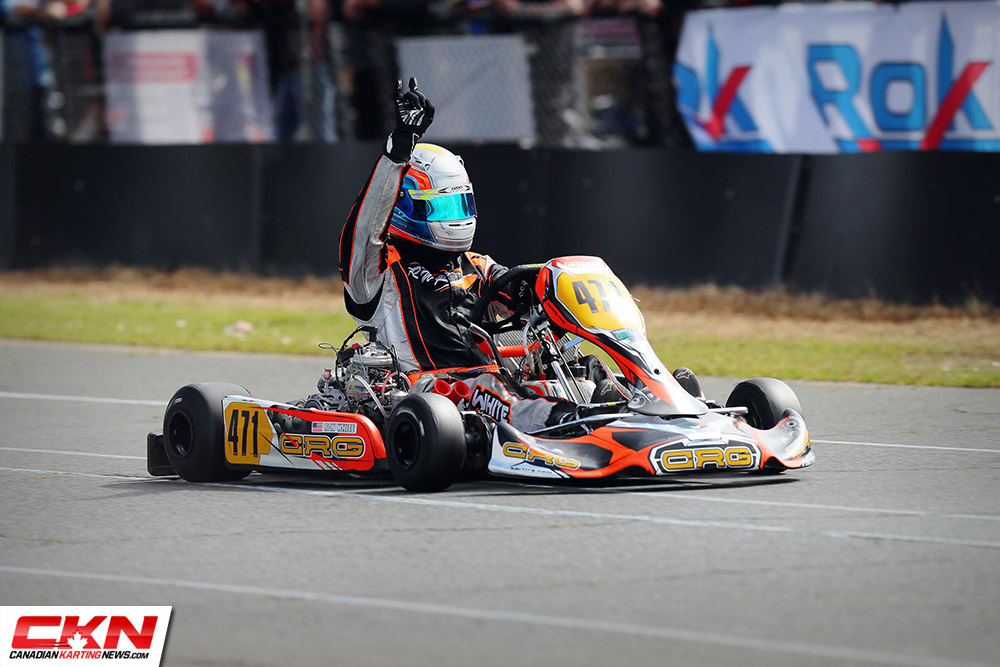 A pair of third-place finishes in Rok Shifter Masters for Rod Clinard (CRG) was all he needed to solidify the title as he entered the weekend with three race wins in hand. Jimmy O’Neil (CRG) and Ben Schermerhorn (BirelART) won the two finals