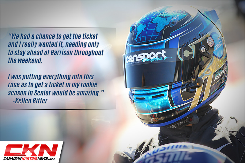We headed into this weekend 38 points behind Austin Garrison, who was second in the points and in the lead for the ticket to the Rotax Grand Finals in Sarno, Italy. We had a chance to get the ticket and I really wanted it, needing only to stay ahead of Garrison throughout the weekend. I was putting everything into this race as to get a ticket in my rookie season in Senior would be amazing.