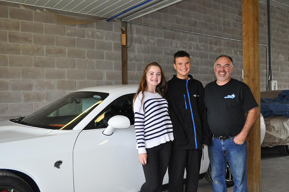 Kelsey and her father with Austin Riley of Racing with Autism (Photo courtesy: Jason Riley / Racing with Autism)