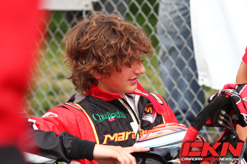 At the Canadian Nationals the action starts early, with Qualifying and the first heat taking place on Friday. I felt really confident in my equipment and driving going into qualifying and the result was quite decent, P6! Being able to start each heat race 6th was an excellent opportunity for me to gain information from the people around me. Not so excellent, was the fact that off the starts at Tremblant drivers negotiate four right-handers before getting a switch-back left, so the outside really has to work hard to fight for an inside spot. This proved to be true after the first heat race start. Austin Milwain and myself were caught in an incident involving a third driver going into Turn 1 (proper); three karts going for the same piece of track seldom works out! Mostly caused by my lack of judgment of the pressure the kart behind me was bump-forcing on me, I wasn’t able to complete my apex and – in short – it caused me to make contact with Austin, who was also defending his line. Obviously this was not my intention and is not good for Heat race points, but being able to shake hands after a race is something I truly respect about Canadian karting and my competitors.