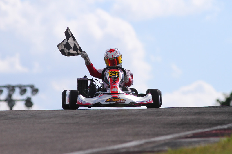 While Ouellette and Cooper hogged the top two spots through both Goodwood Prefinals and Finals, Boisclair stepped up, literally, at ICAR when he finished second in race three. Then at Mosport he was headed for pole on Saturday when a flat tire deflated his run, but he once again climbed to P2 in the Final. Then, on Sunday, he finally cracked the stranglehold on top spot and won in convincing fashion. All told through five rounds Boisclair’s lowest finish is P6 in a Prefinal – and that was through no fault of his own. He has a win, two seconds, a third, a fourth, and 1075 points good for second overall. His drop see’s him fall to third at 875, but from there he is very much in the championship picture – and he gets the picture when it comes to championships. Boisclair is a five time National Champion, and in ten years of karting has been to the Rotax Grand Finals a record eight times! The karts can’t line up soon enough!