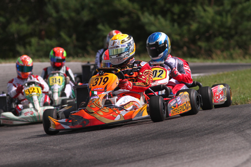 In the inaugural ECKC season Di Leo emerged champion after besting Pier-Luc Ouellette at the Tremblant season finale. Last year after being thumped to retirement in turn one at the finale, he ended exactly tied with Kevin Monteith and took the title based on wins. This year he heads to Trois-Rivieres in a third-consecutive showdown holding a ten point drop-adjusted lead over Steven Szigeti as he looks for a championship three-peat. Di Leo has created the slimmest of championship leads based on two wins at Goodwood and another at the latest Mosport round. He also finished second in the opening Mosport start, fourth at ICAR, and his lowest point-scoring run of ten so far was fifth in a Prefinal. Di Leo has 1140 points overall through five races, and his drop at the moment is 195 scored at ICAR. With the difference between first and second being twenty points, Rotax Senior is a head-to-head competition, and it’s nothing new for the reigning champ.