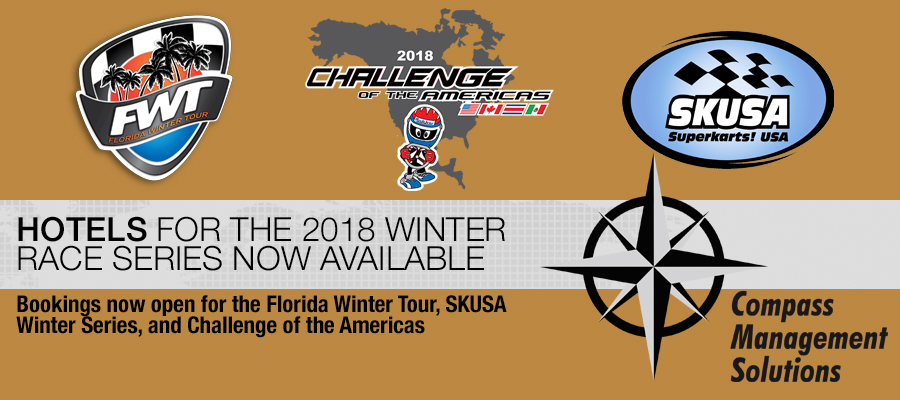 Need help finding a hotel for the Florida Winter Tour, SKUSA Winter Series or Challenge of the America’s? Then look to Compass Management Solutions for all your booking needs! http://compassmanagementsolutions.com