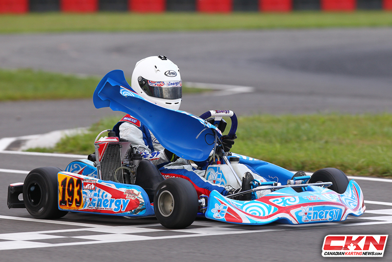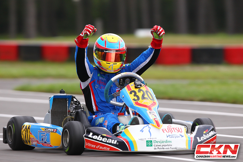 Cedrik Lupien celebrates his second ECKC Rotax Senior victory on Sunday, dedicating both wins this weekend to late Grandfather. (Photo by: Cody Schindel/CKN)
