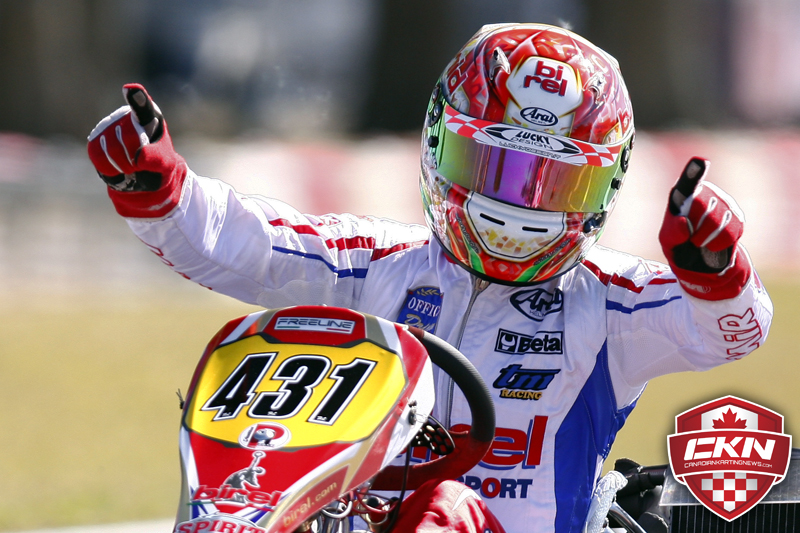 After his controversial disqualification in Homestead removing him from his podium finish on Sunday, Paolo de Conto put his stamp on the Rotax DD2 class in Ocala, sweeping both features in fine fashion. He was given a run for his money in the early laps of both finals, but ultimately De Conto was able to drive away from his competition aboard his KMS/Birel chassis.