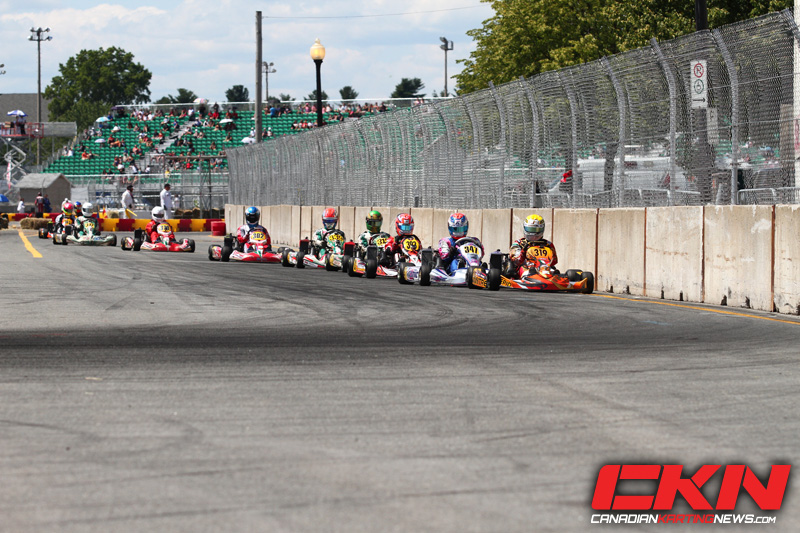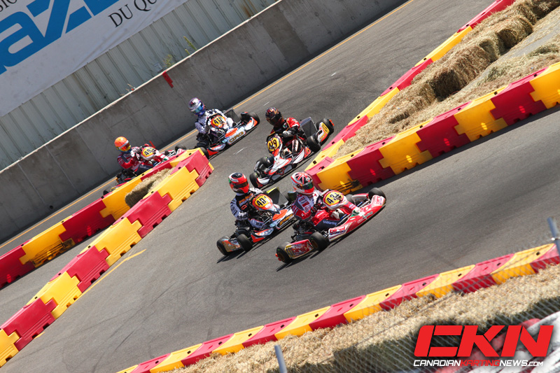 Closest of the championship chases was Rotax Senior where Intrepid North America driver and two-time defending champion Marco Di Leo was clinging to a ten-point lead through five rounds over reigning Canadian National Champion and SH Karting/TonyKart driver Steven Szigeti. The challenger fired an opening salvo in winning Saturday’s Coupe de Quebec race, but Di Leo countered Sunday morning when he took pole by 0.046 seconds over Luke Chudleigh. Andrew Palmer was third for J3 Competition/Kosmic, Maxime Couturier fourth and Szigeti fifth in a field of twenty-one.