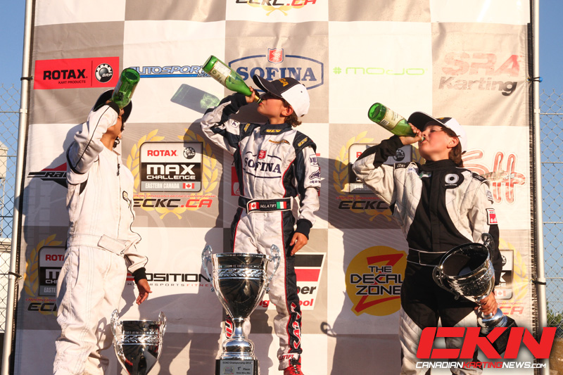 The Rotax Micro-Max class took the classy route after receiving their Championship hardware, slugging back their non-alcoholic winnings. (Photo by: Cody Schindel/CKN)