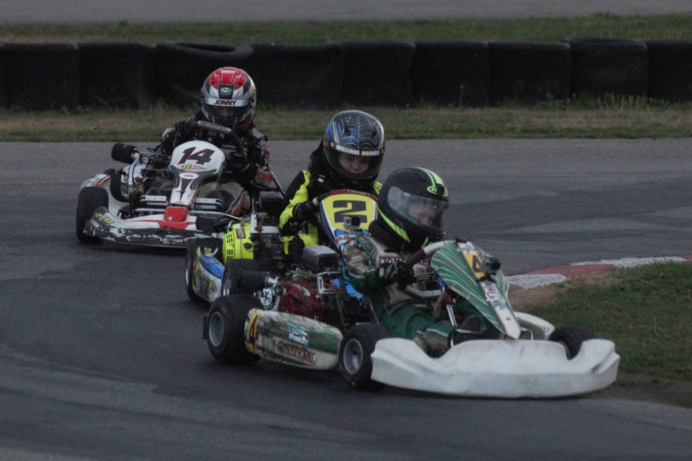 It was racing under the lights this past Friday for the WRKC which once again was one of the best attended events this year for both racers and spectators . The Novice group once again proved to be one of the most action packed events of the night with Ethan Donkers holding off the hard charging Jonny Robilard and Joey Woolsey to take the win . Senior Medium class remains one of the largest and most competitive groups and this night race was no exception with Tristan Gill waiting for the slightest mistake by TJ Marshalls who held off both Tristan Gill and Austin Bisschop for the win. Masters was no exception to the nights excitement with Brian Wilkinson taking the win followed closely behind by Adrian Donkers and Dave Mordue.