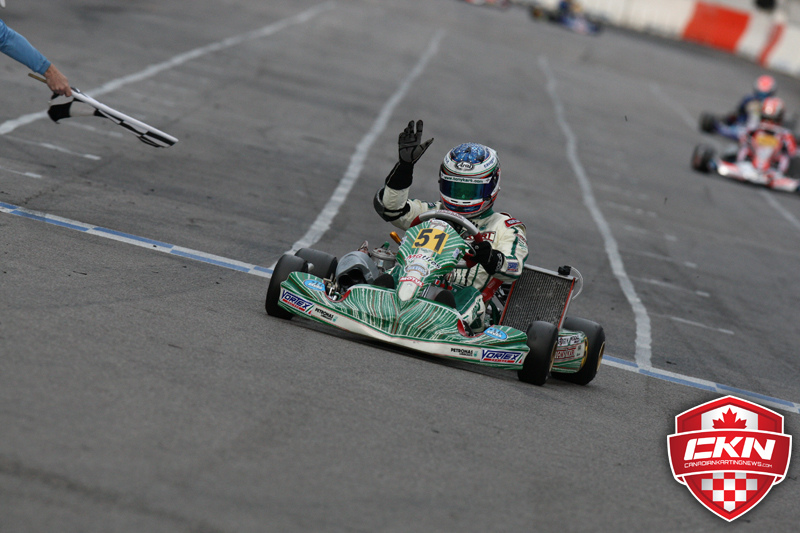 The story of the week in the KZ2 class was Max Verstappen, son of ex-Formula One driver Jos Verstappen. Claiming the pole position and heat race win on Friday, Max swept Saturday’s wheel-to-wheel action with another pair of heat race wins. Claiming the pole position for Sunday and having a wicked race pace, it looked as if the rest of the KZ competitors would be left to battle for second, but as they say in racing, its never over until the checkered flag flies. Bogging off the line during the main event standing start, Verstappen was able to maintain the lead for the first few circuits before his engine started heading south. Losing the lead off the exit of turn five, Verstappen handed the lead to Tony Kart’s Marco Ardigo who never looked back. Driving away from the field and to a $10,000 payday, Ardigo claimed his third SuperNationals victory. Verstappen would eventually retire from the race with what appeared to be an electrical issue.