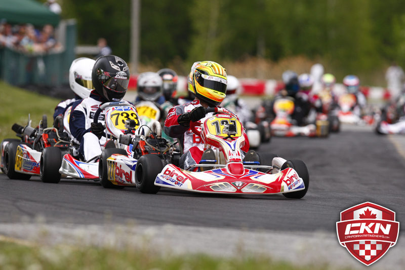 The 2013 Coupe du Québec season finally hit the track this past weekend as karters, teams and families all made their way east of Montreal to SH Karting. The facility was in tip-top shape, with lush grass wrapping around the tight and twisting 1KM track. A new format for this years Coupe saw officials toss out the qualifying session and replace it with two inverted grid heat races. With drivers selecting a number at registration, their grid position for heat one would be reverse for heat two, creating lots of action and passing through the entire field of each class. These two heats would be followed up by the usual Pre Final and Final races.