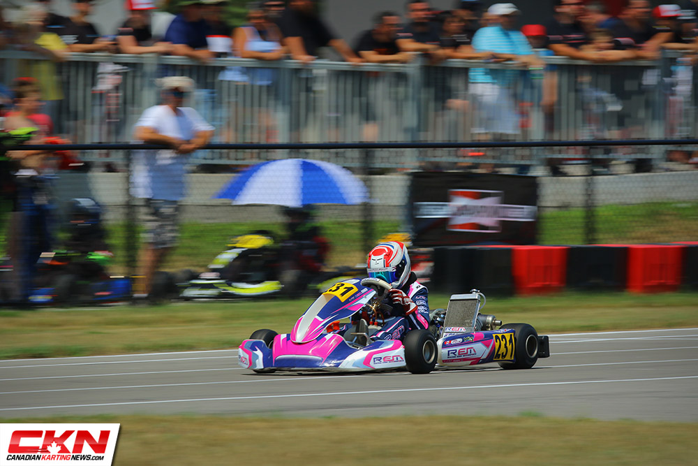 The Champion Ron Fellows Karting Challenge held round three of their 2018 championship on Canada Day at Mosport Kartways, host of the 2018 Canadian Karting Championships. In the first of many major races at Mosport this summer, it was a scorcher as drivers faced temperatures well into the 30’s and very high humidity. The weather took a toll on the everyone in attendance at Mosport, with drivers being reminded throughout the day to stay hydrated.