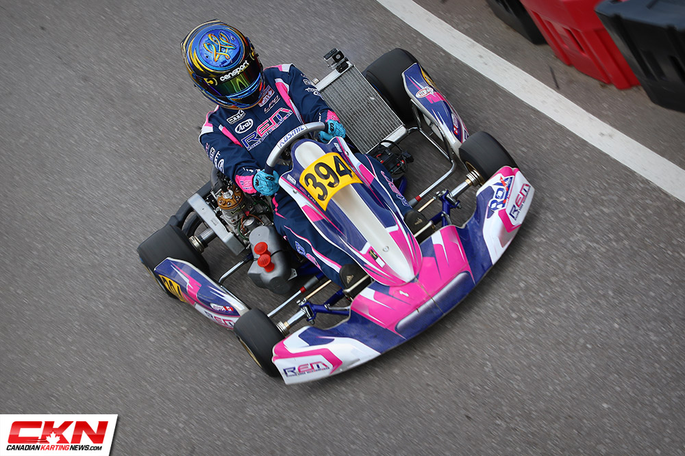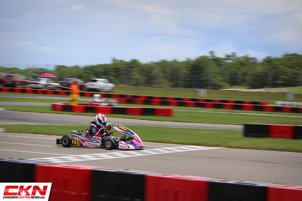 Unpredictable and incredibly challenging are what most drivers called Saturday’s conditions at Mosport Kartways for round four of the Champion Ron Fellows Karting Challenge. A mix of rain and sunshine created constant unknown all day long, forcing drivers and teams to make tire and setup decisions at the absolute last moments before their races hit the track, and even then, many were caught out when the weather changed time and time again as rain fell on three different occasions during the day.