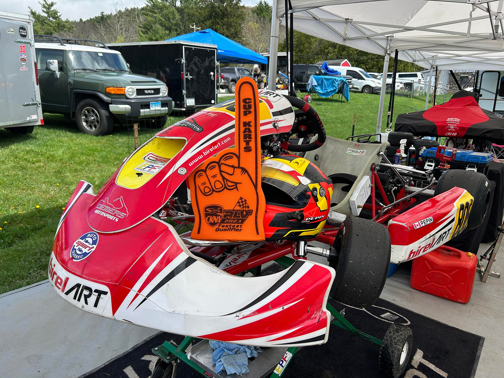 Francois noted “The Cup Karts North East event stands out from other divisional events that we have attended in Canada because it was all about small teams and had a “Club” feel to the race. No big teams were present and more pop-up tent and family teams brought a different vibe to racing”. Simon Pepin noted “Quick chats with OVRP members helped with baselining the gear ratio, we were welcomed and everyone was friendly. I hope we will be able to help these guys out when they visit us at Cup Karts Canada events as they did for us! We were here mainly to assess the Vega Red and develop our PSL Karting Birel setup. We found tough competition and friendly faces”.