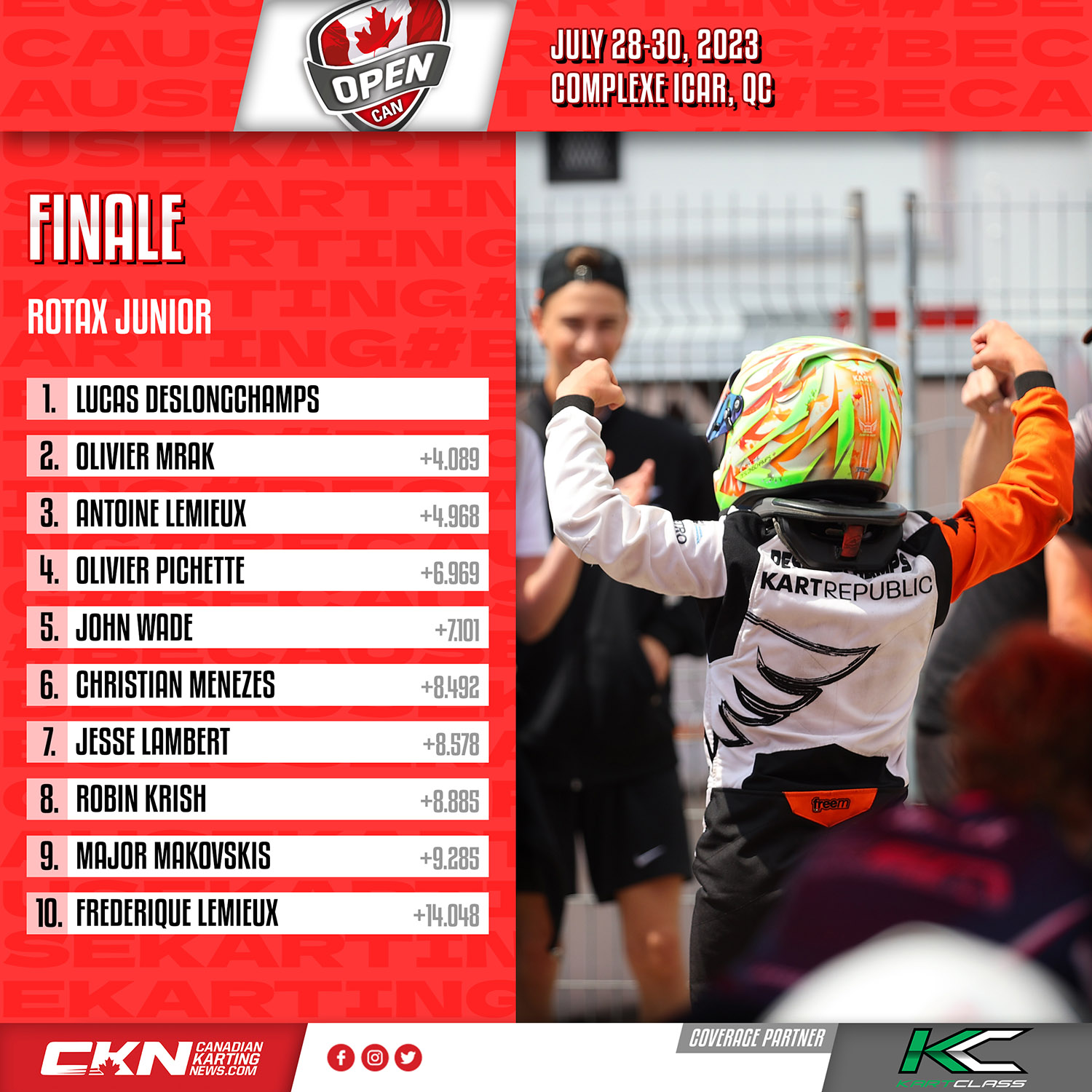The dream season for Lucas Deslongchamps continued this past weekend as he added another victory to his resume, this time at the Canadian Open where he also secured a position on Team Canada for the Rotax Max Challenge Grand Finals.
