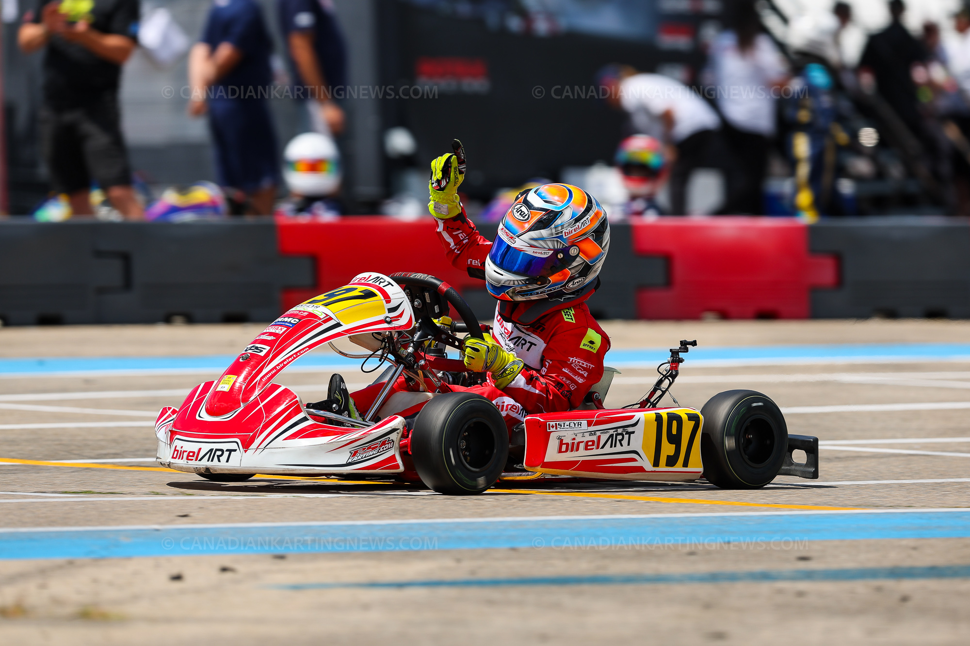 It wasn’t an easy feat for St-Cyr though as the likes of Massimo Lorusso (KGR/CRG), Brando Londono (Energy Americas/Energy Kart), Olivier Chasse (HMP/Kart Republic) and many more stalked him throughout the heats and the feature.