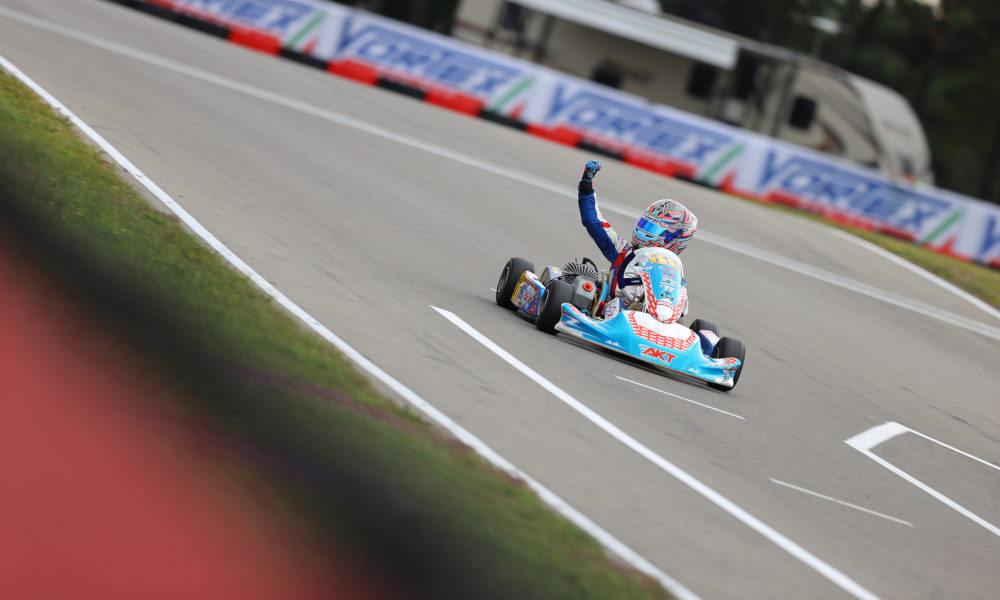 Saturday featured a great battle for the lead in the PreFinal between Burnett (Energy Corse/Energy Kart), Savio Paniccia (PRO/CL Kart) and Pearce Wade (Prime/BirelART), but fast-changing weather had an effect on the grid for the Final, unfortunately leading to four drivers being unable to start with carburation issues.