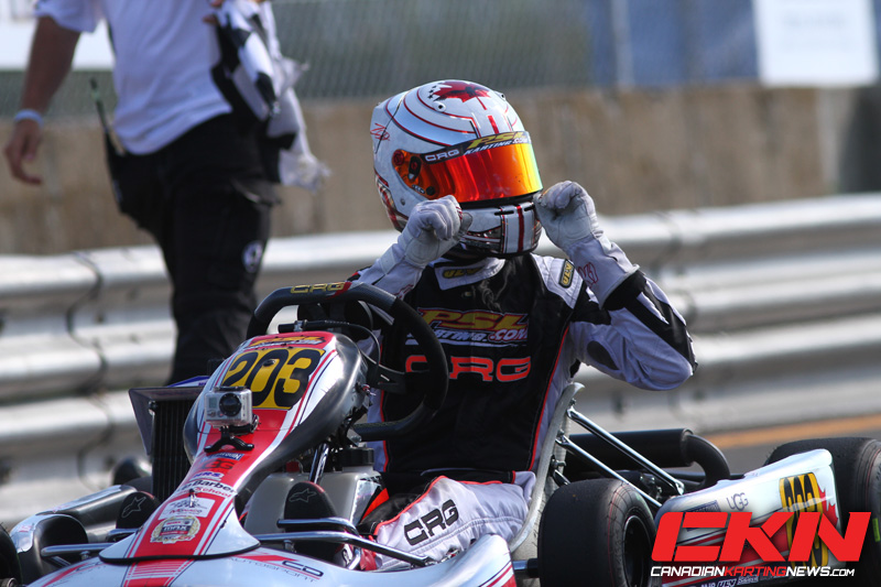 All of this would not have been possible without the support of my Mom and Dad; I really want to thank them for their devotion and encouragement in fueling my passion for racing. I need to also thank my sponsors: SeCe Apparel, Uggs, Villebrequin, PSL Karting and CRG S.p.a. My team at ZCD Autosport also did a great job: Mike Wilson and his driver coaching and advice, Chirs Green with his chassis tuning and advice, Nigel Horner at HRS for the best engines available, Damon Schatrowski for everything he does to contribute to the team and I can’t forget my sister Zoe who is always there to cheer me on. I will see you all back in Mont-Tremblant for the Canadian Nationals.