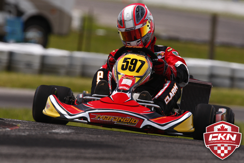 The winningest driver in ECKC history was on his game again Saturday at Mosport as Stuart Clark (Maranello North America/Maranello) lead the Rotax DD2 Masters class all day long. Last years champion was hitting all his marks and he started it off by setting the fastest time in Qualifying, 0.765 seconds ahead of second place Francis Mondou (IPK Quebec/OK1). Martin Verville (Haase) was over a second off Clark in third while Luc Sauriol (PSL Karting/CRG) and Elvis Stojko (Praga Racing Ontario/Praga) rounded the top-five.