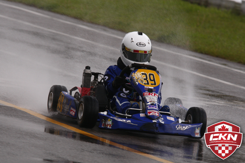 Drivers and teams returned to Mosport International Karting for race two of the 2013 Eastern Canadian Karting Championship. The weather was very much the same as Saturday’s competition where a mixture of rain and sun and heavy winds played havoc on everyone in attendance.