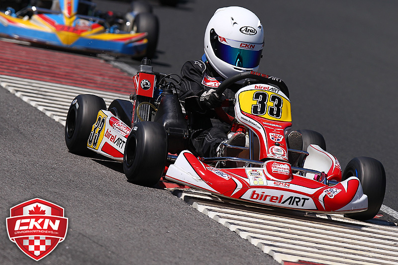 Justin Arseneau (Ben Cooper Racing/BirelART) was the fast qualifier Saturday in Rotax Micro Max ahead of American Karsten Defonce (FA Kart) and Dale Curran (Ben Cooper Racing/BirelART) but in the PreFinal Curran came out on top ahead of Areseneau and Defonce setting up a great race for the final.