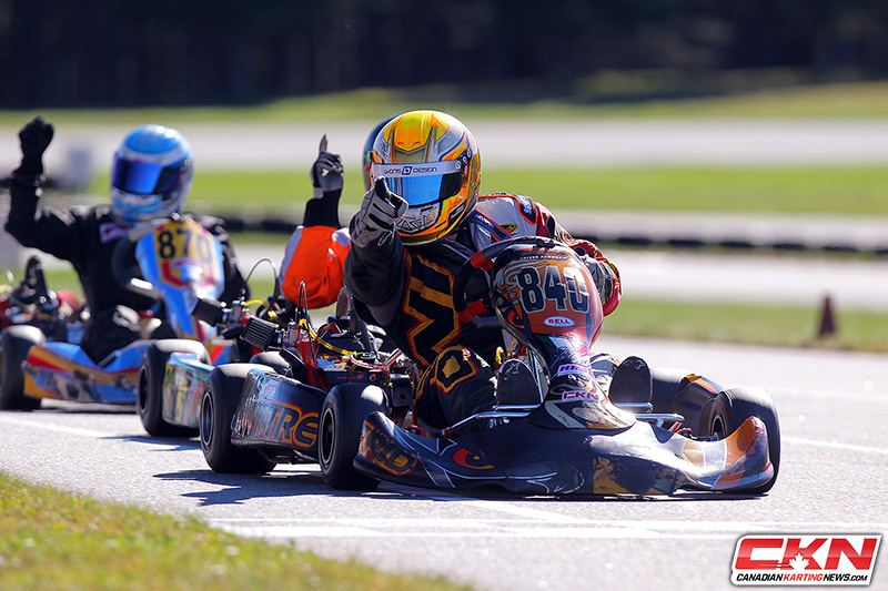 Mario Martin (TonyKart) nipped both Guy Savard (FA Kart) and Gilbert for the pole-position in Qualifying by 0.031 seconds, Anderson went to work in the PreFinal taking the win after starting seventh with Rogers three spots behind him in fourth.