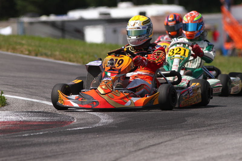 After Jesse Lazare (SH Karting/TonyKart) got the early lead from his pole-position starting spot, he would surrender the lead on lap two to Marco Di Leo (Intrepid North America/Intrepid). The two would then break away from the pack, while positions three through seven diced it out.