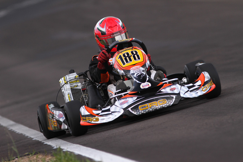 American Matthew Thomas (PSL Karting/CRG) took the lead early thanks to his pole-position starting spot. Tucking in behind him, Austin Riley (Intrepid North America/Praga) was all over the rear bumper of Thomas, with Alex Murphy (PSL Karting/CRG) in tow as well. The trio quickly pulled away, while the remainder of the field settled into position.