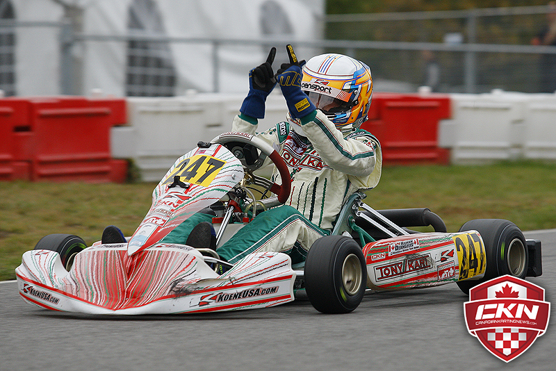 Entering the day, Alex Lacroix (SH Racing/FA Kart) assumed the position, with Roman DeAngelis (Koene/TonyKart), Samuel Lupien (SH Racing/FA Kart) and Natael Cantin (KMS/Birel) all within earshot of the runner-up championship position.