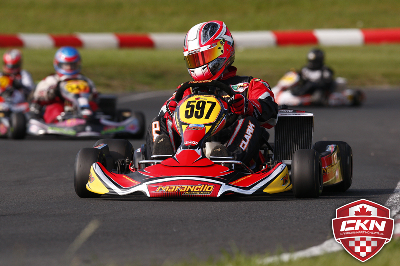 Clark did have to work for Sundays victory as Luc Sauriol (PSL Karting/CRG) assumed the lead from the start that saw Clark moved back to third for two false starts. Martin Verville (Haase) then took the lead and held Clark at bay for a couple laps with Sauriol on their toes as well.