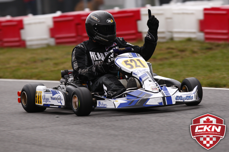 While championship leader Stuart Clark (Prime/Maranello) limped around the track in the Prefinal at Mont-Tremblant to secure the title while nursing a foot injury, Francis Mondou (IPK/Praga) and Luc Sauriol (PSL Karting/CRG) were racing up front for the win.