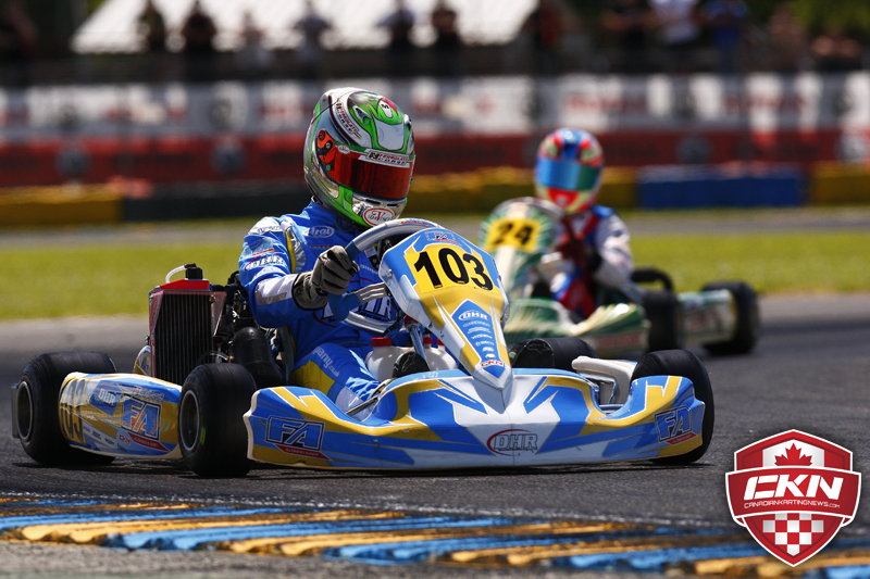 As our only Canadian in the category Gianfranco Mazzaferro drove his DHR/FA Kart to a twelfth place result, only two-tenths of a second from second-place as the competition here in Italy is very, very close. Mazzaferro will have to start each of his heat races from the outside row as his twelfth position places him in group D.