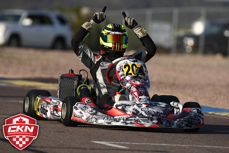 Marco Kacic was ecstatic with his #COTA Mini-Max victory today in Phoenix, the lone Canadian winner on the day. A photo posted by CanadianKartingNews.com (@ckn_live) on